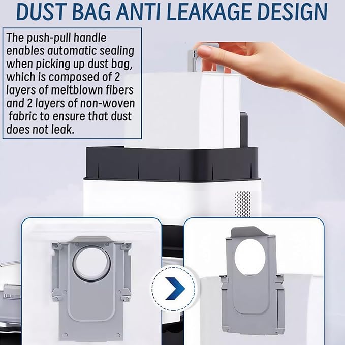 - 【AUTO-SEAL DESIGN DUST BAG】Push pull handle has strong sealing performance. The dust bag is thoroughly sealed as soon as you take it out of the base to prevent spilling and keep dust from floating up into the air. Vacuum cleaner dust bag made of 2-layer fine melt blown fiber and 2 layer nonwoven fabric. High Density fabric ensures vacuum cleaner bag which is sturdy, durable.