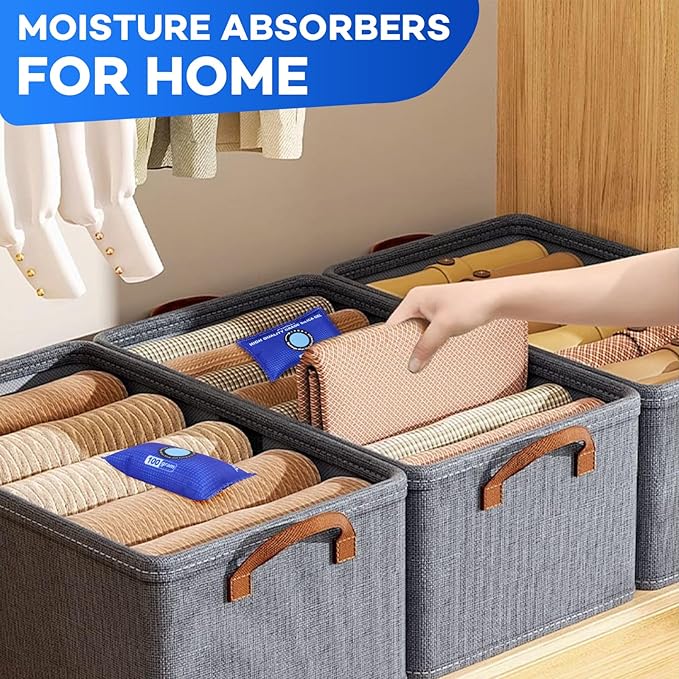 12 Pack Rechargeable Desiccant Packs, 100g Each, Blue, Color Indicating Silica Gel Dehumidifier Bags for Storage, Closets, Cars, Bins