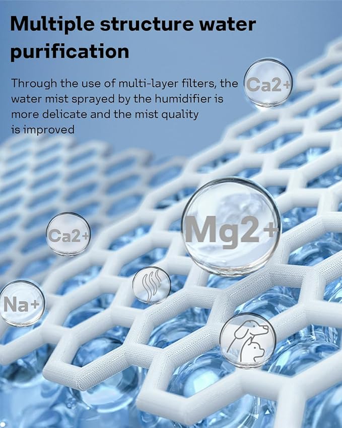 - 【Excellent Filter System】Our humidifier core filter releases clean moisture by soothing water vapor molecules, effectively absorb 99.97% of minerals and contaminants in water like white dust, hard water, pet dander, dirt and so on