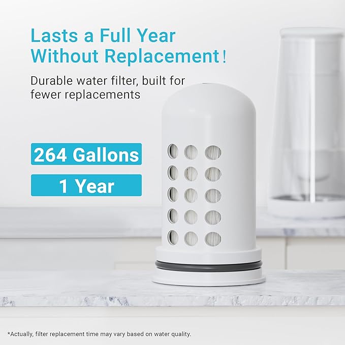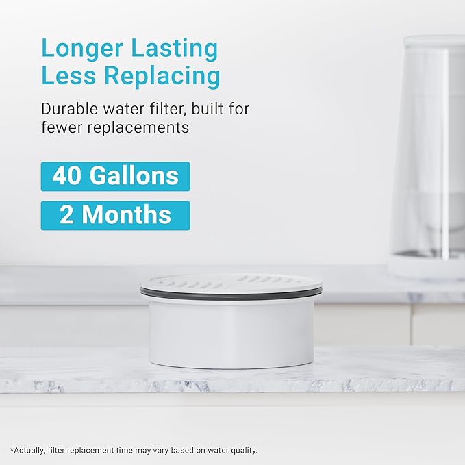 - Longer 2-Month Lifespan:This durable pitcher filter replacement is built to last up to 40 gallons or approximately 2 months before needing a new filter. Designed for fewer replacements, it provides extended use and reliable filtration. Actual filter replacement time may vary depending on water quality.