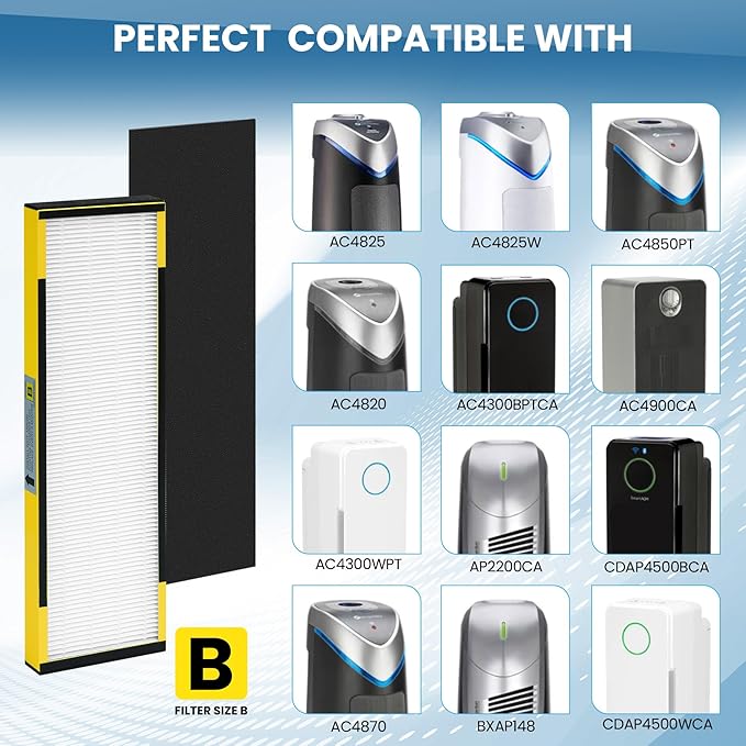 - Package includes 2 x H13 True HEPA Filter and 6 x Activated Carbon Filter. Maintaining optimal air quality in your home or office is crucial for your health and well-being. That's why it's essential to replace the filters in your air purifier regularly. We recommend replacing the HEPA filter every 6-8 months and the pre-filter every 2-3 months for optimal performance