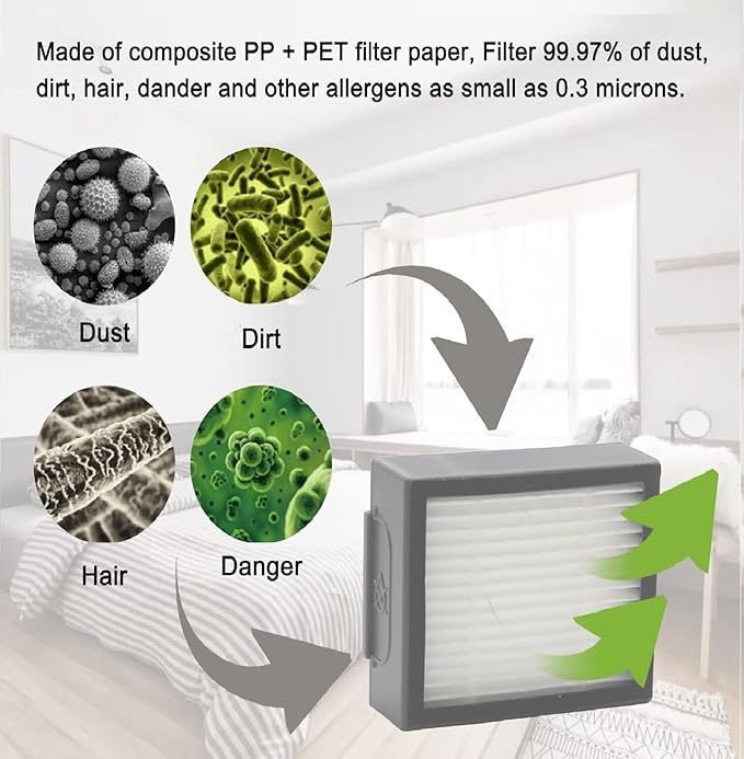 - VALUABLE PACKAGE – Includes 1 set of dual multi-surface rubber brushes & 4 pack high-efficiency HEPA filters & 5 pack edge-sweeping brushes. The products are made of high-strength and environmentally friendly materials to ensure optimal performance and a healthier lifestyle.