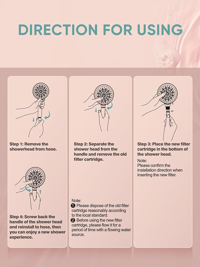 - Standard: Features a 20-layer filtration system that effectively removes chlorine and heavy metals from water. Recommended replacement cycle: 3-4 months (the specific lifespan depends on the water quality in your area).