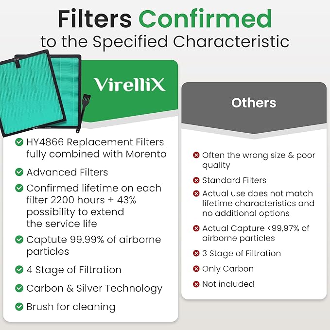 - šš¬š°š“š²š² šš¶šæ šš¶š¹šš²šæ š„š²š½š¹š®š°š²šŗš²š»š: The pack contains of 4 pieces and brush; each filter has a service life of 3145 hours; the air purifier filter is specially designed to be compatible with MORENTO HY4866, WESTHEY HY4866 and YIOU M1 air purifiers; important to check the model before purchase