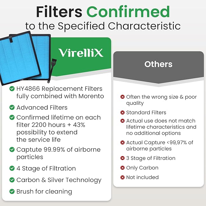 - šš¬š°š“š²š² šš¶šæ šš¶š¹šš²šæ š„š²š½š¹š®š°š²šŗš²š»š: The pack contains of 4 pieces and brush; each filter has a service life of 3145 hours; the air purifier filter is specially designed to be compatible with MORENTO HY4866, WESTHEY HY4866 and YIOU M1 air purifiers; important to check the model before purchase