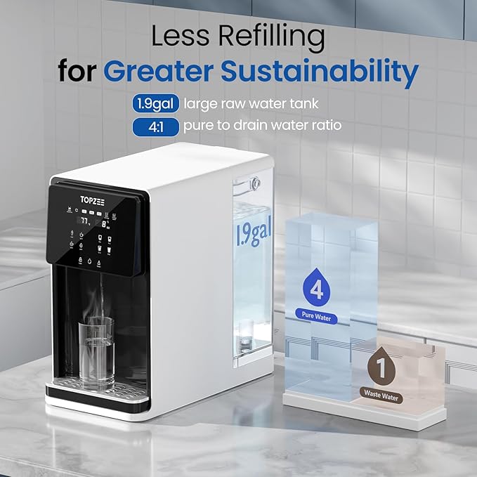 - 8-Stage Filtration & UV Sterilization for Ultimate Purity- Featuring a 8-stage advanced filtration system with a 0.0001μm RO membrane that removes over 1,000 contaminants, including heavy metals (lead, arsenic, aluminum), TDS, chlorine, and microplastics, achieving a 99.9% removal rate. The built-in UV lamp ensures every drop is pure and safe to drink.