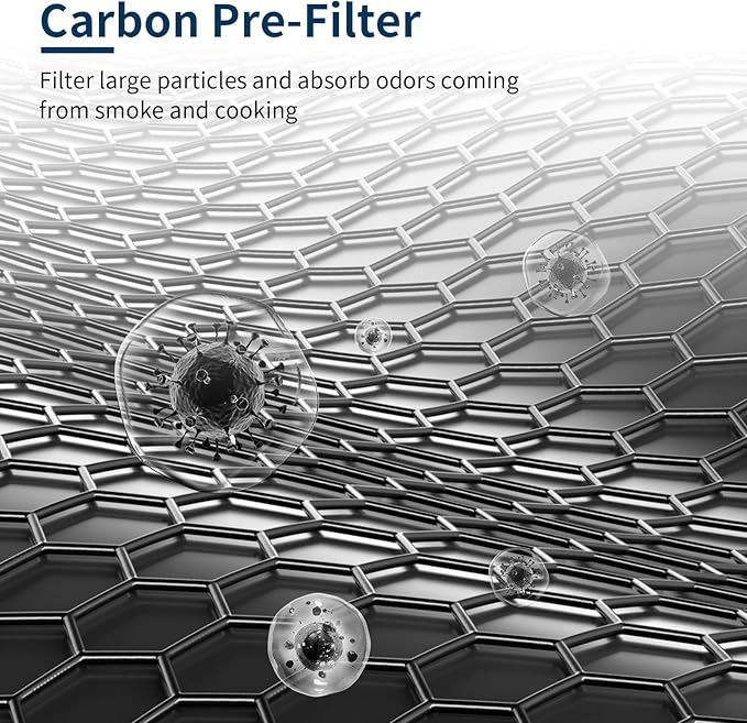 - Activated Carbon Layer: The activated carbon pre-filter can absorb unpleasant household odors such as smoke, cooking fume and pet odor, and keep your living environment fresh and comfortable.