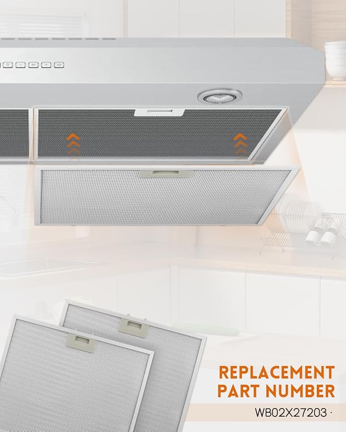 2 Pcs WB02X27203 Range Hood Grease Filter Replacement Fit for GE JVX5360DJ1BB JVX5360DJ1WW JVX5360SJ1SS JVX5365SJ1SS JVX5365SJ2SS Size 16-3/4 x 13-3/4 Inches
