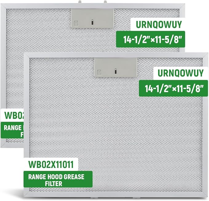 2 Pcs WB02X11011 Range Hood Grease Filter Replacement Fit for GE JV636H1SS JV636H2SS JV536H1SS JV536H2SS JV535H1WW JV635H1BB JV635H2CC Size 14-1/2 x 11-5/8 Inches