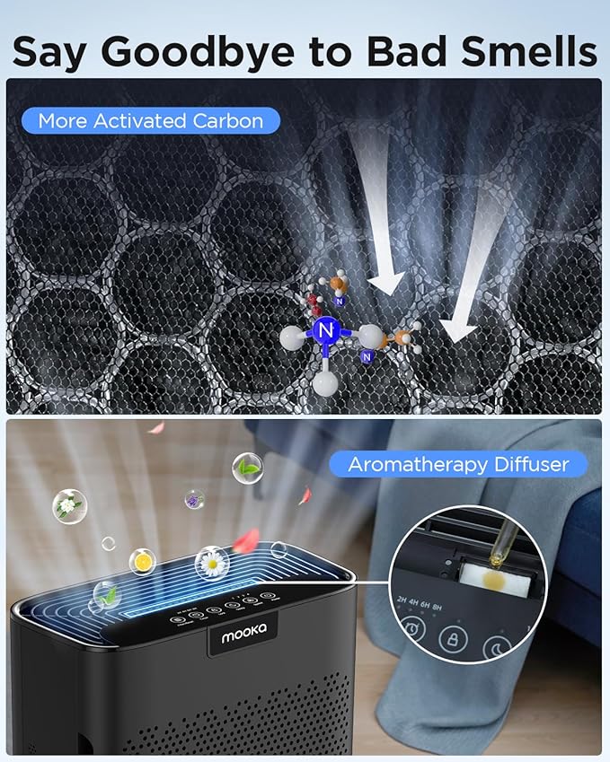 Air Purifiers for Home Large Room 2200 Ft² with Washable Filters, MOOKA HEPA Filter Pet Air Purifier for Bedroom with Fragrance, Air Cleaner for Smoke Dust Pollen Pets Hair Odor, KJ190L Black