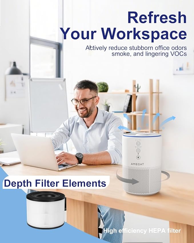 - Air purifier HEPA filter: The high-efficiency H13 True HEPA 3-in-1 filter can effectively 99.97% of air pollutants such as pollen (PM10), pet dander, smoke, indoor odors, PM 2.5, and ultrafine particles as small as 0.1 microns (µm) (including car exhaust). air cleaners for home Effectively improve indoor air quality and relieve asthma and sneezing.