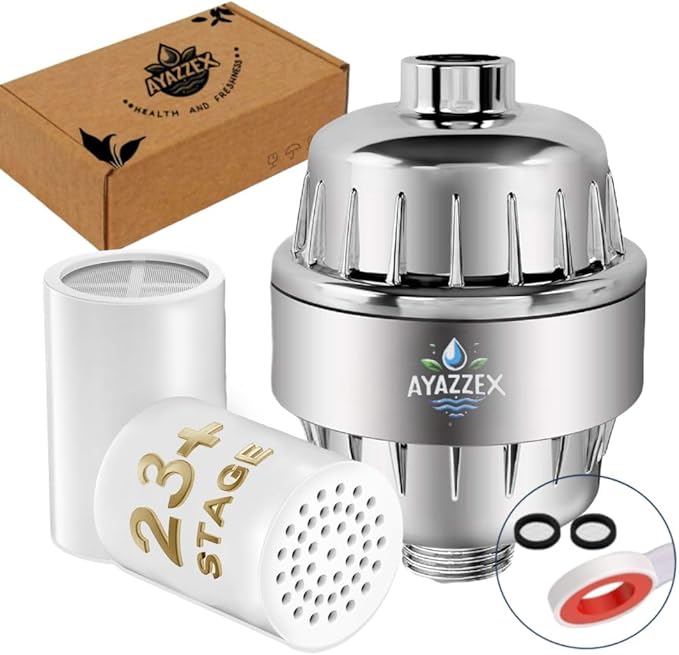 - π¨βπ©βπ¦βπ¦β€οΈ23-STAGE ADVANCED SHOWER HEAD FILTER: Combat hard water, removing chlorine and heavy metals. The 23-stage system, featuring Activated Carbon, KDF-55, Calcium Sulfate, and Ceramic Balls, Coconut Shell Activated, Vitamins A C E ensures a healthy cleanse.