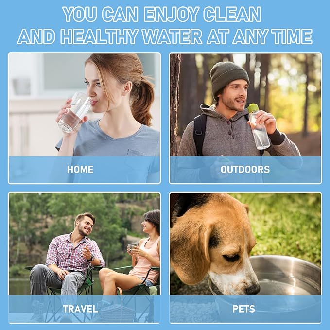 - POWERFUL PURIFICATION--Designed for families that use substandard drinking water, for travel and outdoor activities. The filter removes up to 99.99% of chlorine and heavy metal, sediment, chlorine, sand, rust, odor and large particles in source water, improving the taste of water. It provides you with clean, safe drinking water.