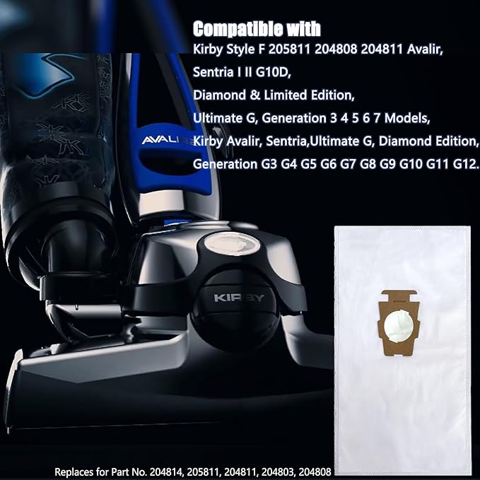 - 【Compatible model】204814 205811 Micron Magic HEPA Filter Plus Vacuum Bags Compatible with kirby Style F 205811 204808 204811 Avalir, Sentria I II G10D, Diamond & Limited Edition, Ultimate G, Generation 3 4 5 6 7 Models,Fit for Avalir, Sentria, Ultimate G, Diamond Edition, Generation G3 G4 G5 G6 G7 G8 G9 G10 G11 G12.