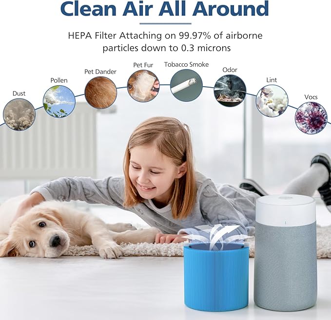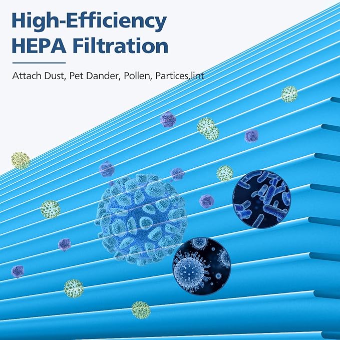 - PREMIUM F4MAX FILTER: The HEPA filter take out at least 99.97% of particles down to 0.3 microns such as pet dander, pollen, dust, common pollutants, and fabric fibers; The carbon filter take up household odors from smoking, pets and cooking.