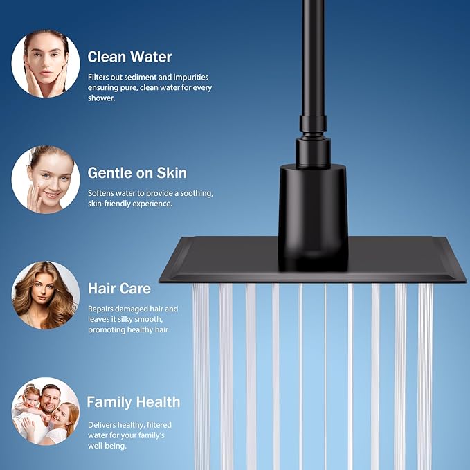 - [Advanced Filtration for Healthier Showers] This stainless steel shower head features a high-efficiency filtration system that helps reduce rust, heavy metals, and other impurities. Enjoy cleaner water with every use, ensuring a refreshing shower experience that supports healthier skin and hair