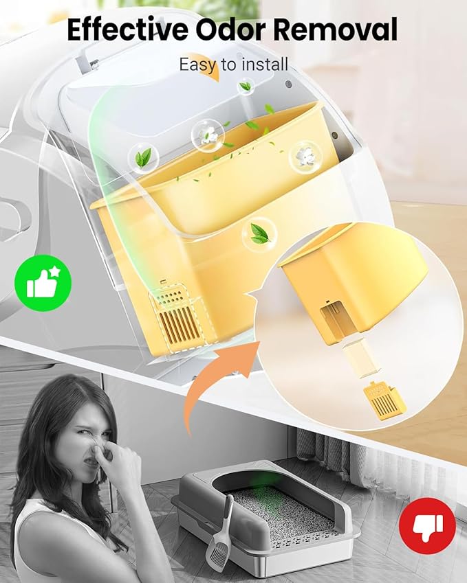 - MULTIFUNCTIONAL DEODORIZER FOR THE WHOLE HOUSEHOLD: This powerful odor eliminator is not only suitable for cat litter boxes, but also works wonders as a garbage can deodorizer in any place affected by pet odors. Whether it's in the kitchen, living room, or in your cat's area, it's the ultimate deodorizer for your home, keeping it clean and fresh for a long time.