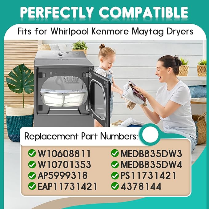 - Perfectly Compatible: W10859086 dryer lint filter replaces part numbers W10608811, fitting various models of Whirlpool, Kenmore, Maytag dryers