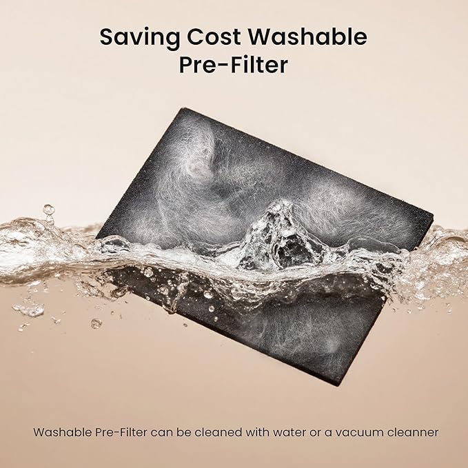 - Save 50% Costs on Filter: our replacement filters are divided into static pre-filter cotton and composite filter. Compare to Regular air purifier which has a max filter life of 3 months, our Replaceable Electrostatic Pre-filtered Cotton, which increases filter cartridge life from 3 months to 6 months, saving you 50% cost. (For filters, please search for B0DT6CWC1K Composite Filter or B0DT5RNTPV Pre-filter).
