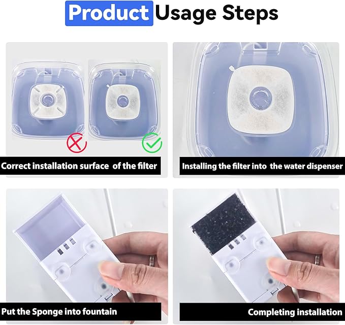 - Individual Packaging:Each box includes 12 packs of replacement cat fountain filters and 12 packs of sponges, which are individually packaged and sealed to ensure you a better experience of use.