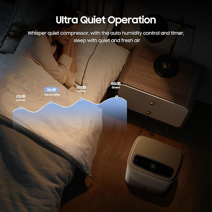 - Portable Design and Quiet Experience - This dehumidifier is stylish and user-friendly, with convenient castors and side handles for easy transport and movement between rooms. The high-efficiency compressor produces noise less than 36 db during dehumidification, providing a quiet and comfortable experience. Its modern design complements any decor, improve the air quality and decorative style
