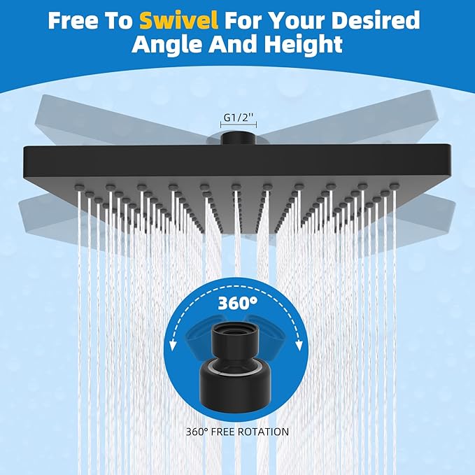 - Easy to Install: The Hibbent high-pressure shower head features a universal G1/2" thread, allowing for easy installation onto wall-mounted or ceiling-mounted shower arms in minutes, without the need for plumbers or tools