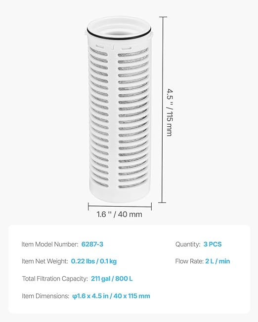 - Capacity 211 Gallons : Included Components 3 x Water Filter Pitcher Replacement Filters
