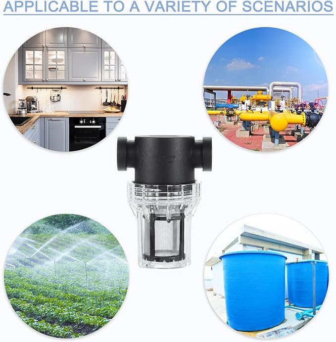 - Application: Suitable for garden hoses, pressure washers, and RVs, widely used in tap water pipes, plantation and equipment, this inline filter strainer effectively removes, extending the lifespan of water equipment.
