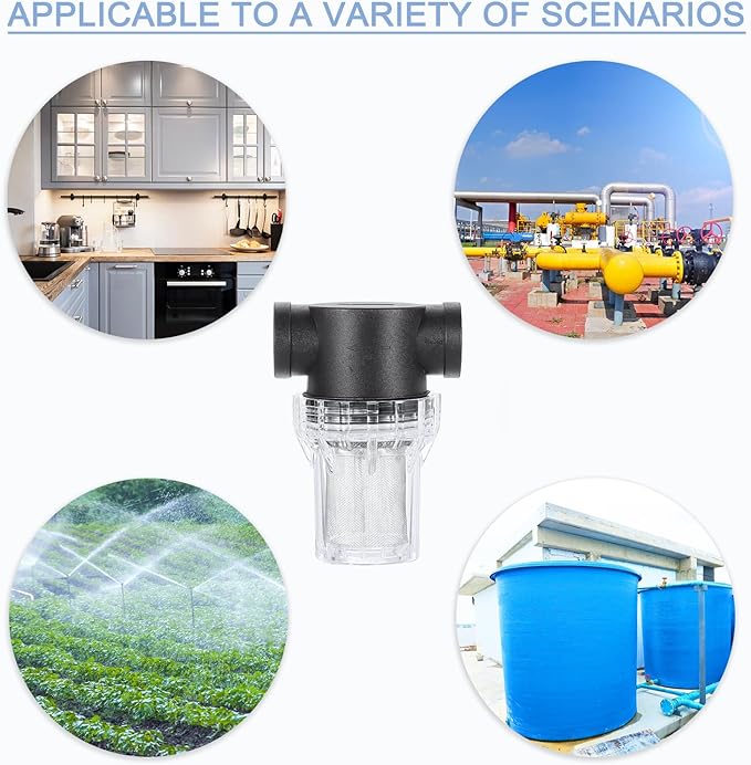 - Application: Suitable for garden hoses, pressure washers, and RVs, widely used in tap water pipes, plantation and equipment, this inline filter strainer effectively removes, extending the lifespan of water equipment.