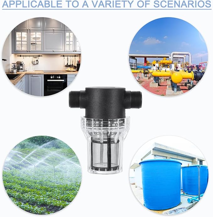 - Application: Suitable for garden hoses, pressure washers, and RVs, widely used in tap water pipes, plantation and equipment, this inline filter strainer effectively removes, extending the lifespan of water equipment.