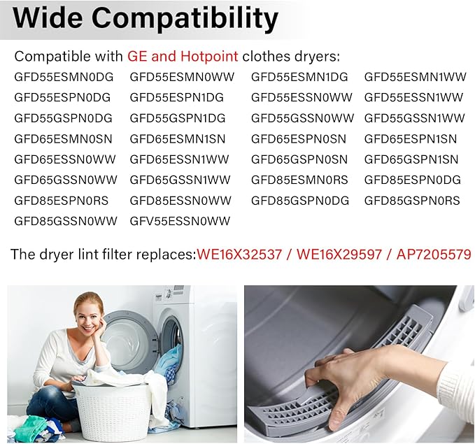 - 【GE Dryer Lint Screen Replacement】 The dryer lint filter replaces: WE16X32537 WE16X29597 AP7205579.