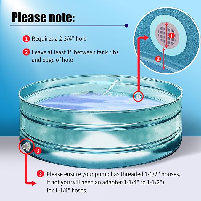 - Please note: This kit fits for Intex Filter Pumps w/ 1-1/2" Hoses, Make sure that the pump has a threaded 1-1/2" hoses. If not, you need an (1-1/4" to 1-1/2") adapter for 1-1/4" hoses. A flat 4" x 4" area on the side of your stock tank which is free of ribs is also required