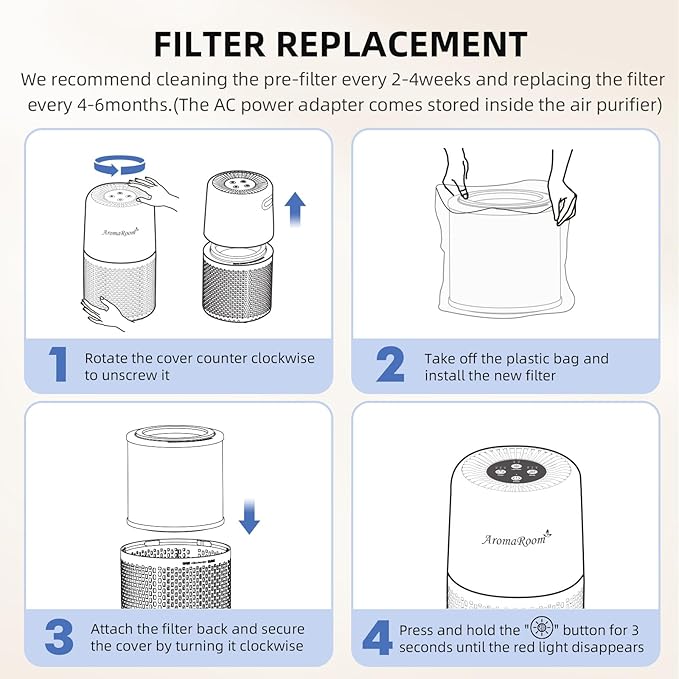 - NOTICE: For optimal performance, we recommend replacing the AromaRoom genuine filter (B0DR1B6R15) every 3-6 months. Local customer service team available 24/7 for you. Please remove the PE bag from the filter before use.