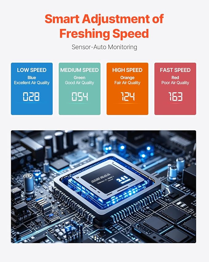 - Auto Mode-Smart Purification Speed Adjustment: The air purifier’s sensors monitor air quality in real-time and automatically adjust purification speed. The smart transition from green (speed 1) to red (speed 4) is clear and intuitive, allowing you to enjoy clean air without worrying about settings.