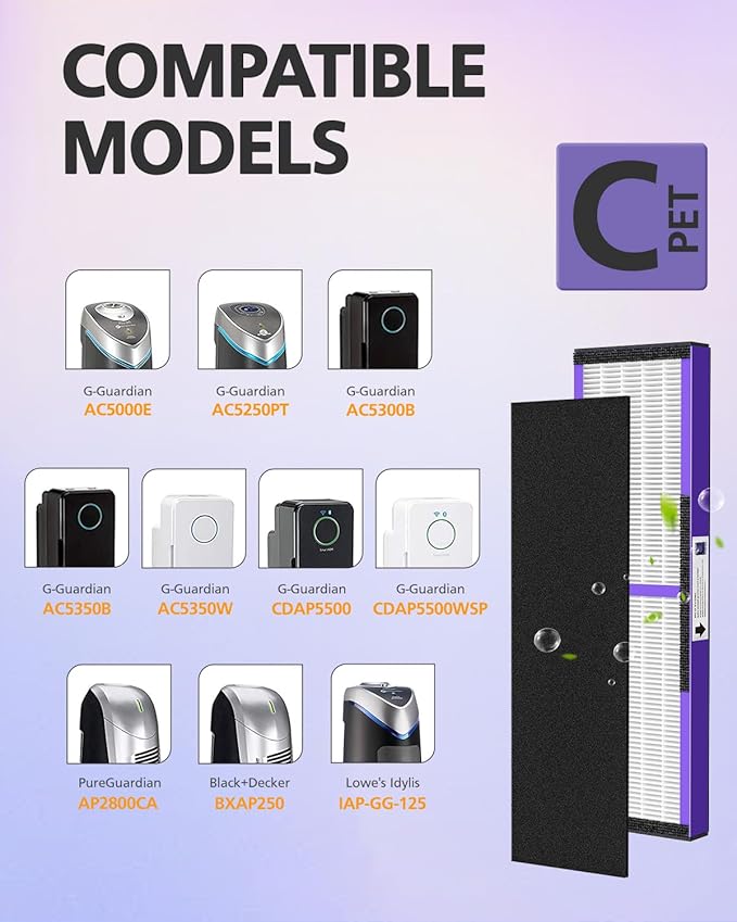 - Only Compatible With Following Air Purifier Models : AC5000E, AC5250PT, AC5300B, AC5350B, AC5350W, CDAP5500, CDAP5500WSP, Also Compatible With Pure Guardian AP2800CA, Black + Decker BXAP250 and Lowe's Idlyis IAP-GG-125. Please confirm your air purifier model number before placing an order !