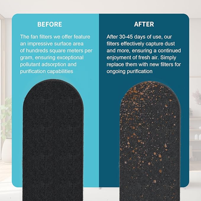 - Ceiling Fan Filters for Blades, Twice the Cleaning Power: Our 20-pack of ceiling fan filters turns your fan into a double-duty air purifier! These fan air purifier pads stick easily to your ceiling fan blades, transforming them into dust and odor-fighting warriors. Who knew fan blades could be so useful?