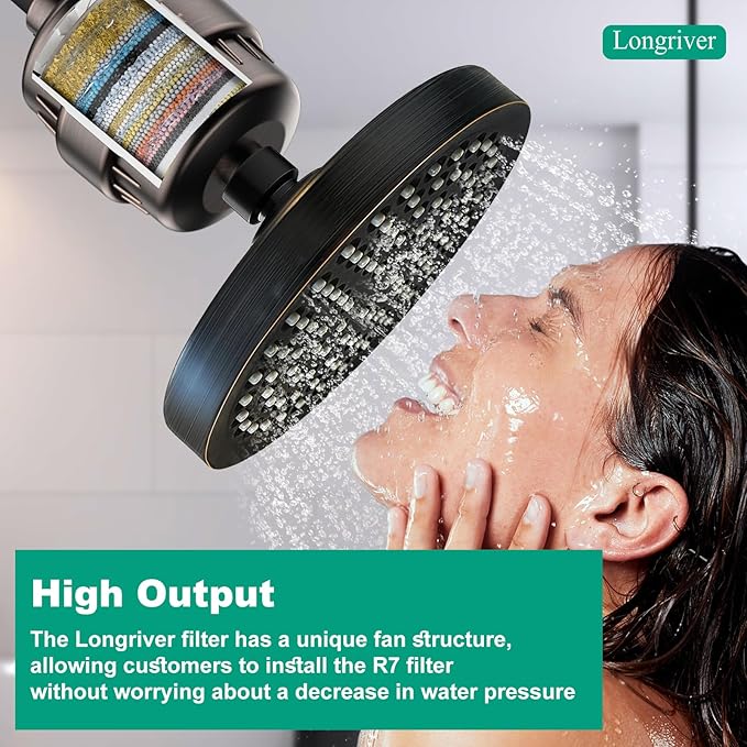 R7 Shower Filter High Put Shower Water Filter for Hard Water 99.99% Remove Chlorine, Heavy Metals, Shower Water Softener, Improve your skin and hair, Bathroom Fixture Hardware Parts, Oil Rubbed Bronze