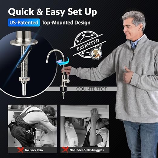 - 500 GPD High Flow Rate: The water filter reverse osmosis provides 500 gallons per day, more than 5x the flow of traditional RO systems. It can fill a cup in just 10 seconds, ensuring a continuous clean water supply for drinking and cooking.