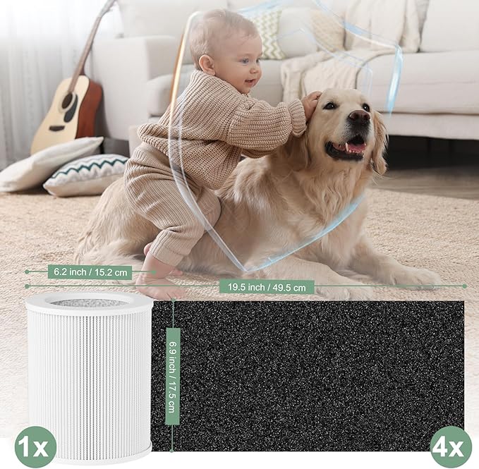 - VALUABLE PACKAGES --The valuable pack includes 2×high-efficiency True HEPA filters + 8×Coconut Carbon Pre-Filters.