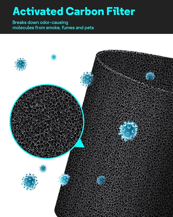- SUPERIOR 3-STAGE FILTRATION: Provides 360° air purification through 3 layers of filtration. Pre-filter traps hair, pet fur and lint. Activated carbon filter removes unpleasant household odors. True HEPA filter captures 99.98% of large, small, & micro particles