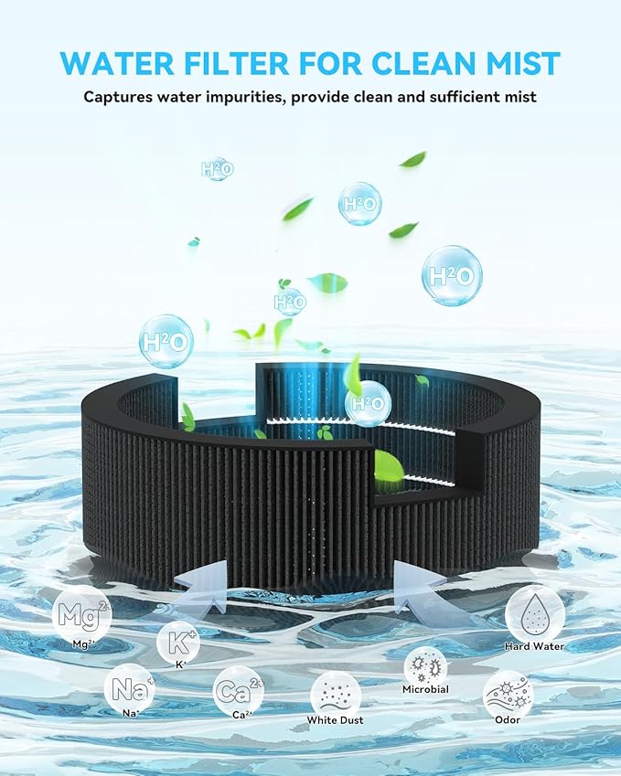 - 【Water Filter】This sprout wick filter not only purifies the mist by capturing water impurities and minerals, but also promotes deep sleep by helping the humidifier distribute moisture evenly and provide sufficient mist