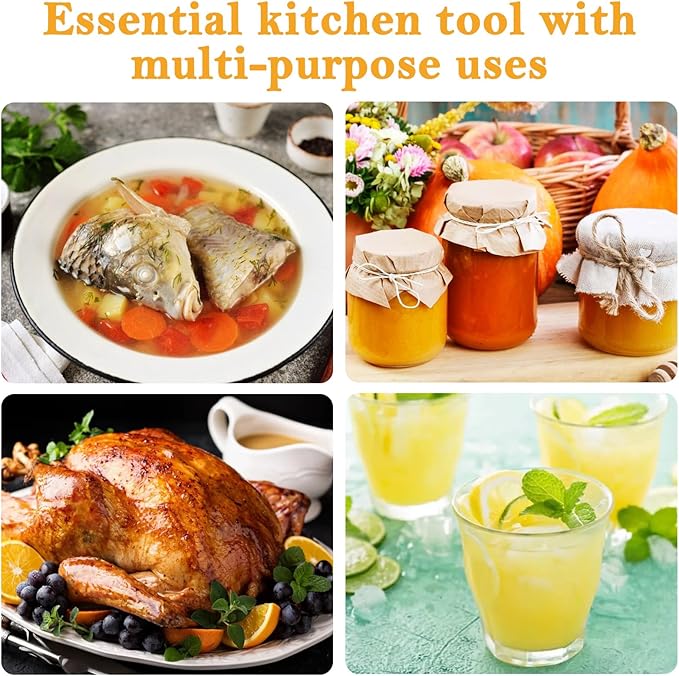 - EFFORTLESS STRAINING:The fine mesh design allows liquids to flow quickly while trapping smaller particles. The cheese cloth bag for straining are easy to clean, ensuring a smooth, no hassle experience every time