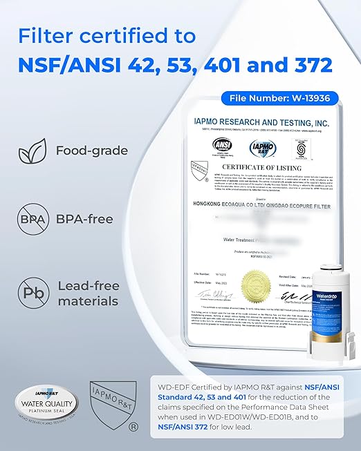 - Long-Lasting 200-Gallon Filter: The filter lasts up to 3 months or 200 gallons, depending on local water quality and usage, reducing the frequency of replacements. Enjoy fresh, clean water with fewer hassles. (Replacement model: WD-EDF)