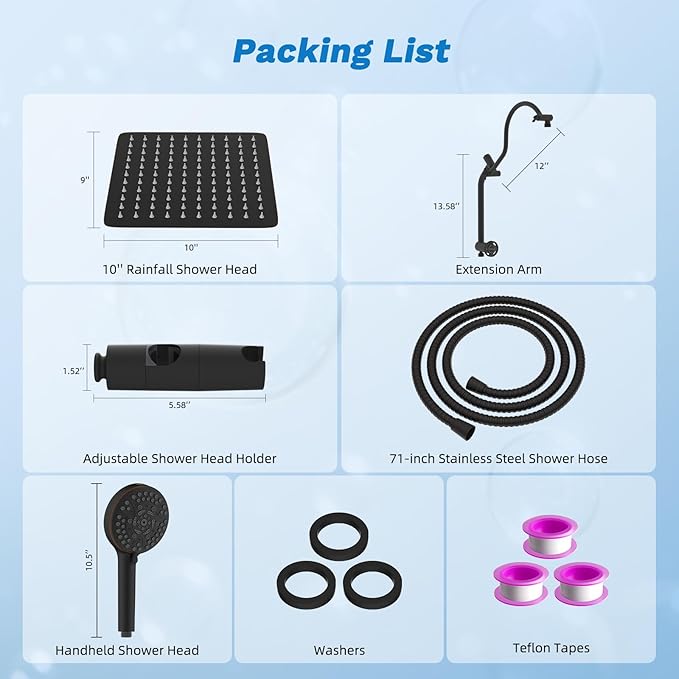 - [Versatile 4-Function Spray Modes Combination] This high pressure showerhead elevates your showering experience with four distinct spray options: Handheld Spray, Rainfall Spray, a combination of Rainfall and Handheld, and a convenient Pause Mode. The single-touch water stop feature minimizes temperature changes, making it perfect for applying shower gel or rinsing off. Additionally, the adjustable extended showerhead holder allows for different angles and is designed longer than standard mounts, reducing splashes from the handheld shower onto the rainfall spray for a more enjoyable shower experience
