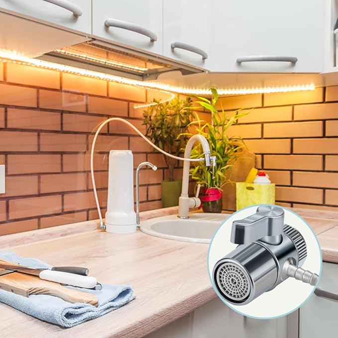 - 【Easy Installation】 Simply connect to your faucet, slide tubing onto the barb, and secure with a clamp if needed. Switch between tap water and filtered water with ease.