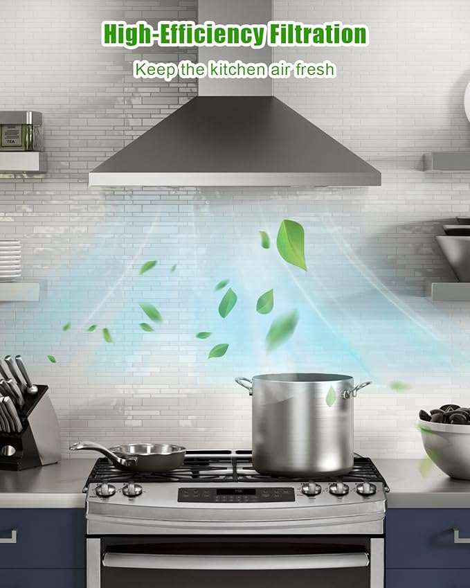 - High-Efficiency Filtration: Range hood filter utilizes multi-layer filtration technology to capture grease and odors generated during cooking, preventing them from spreading into the air. This ensures proper airflow and keeps your kitchen air fresh