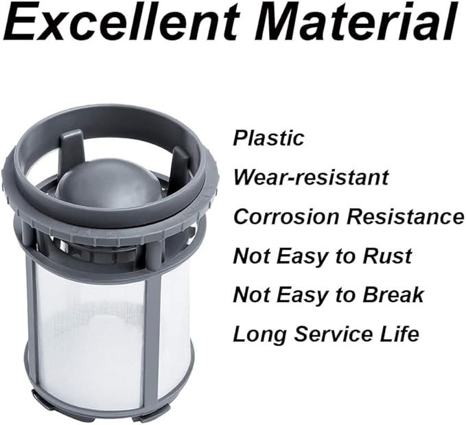 - 1. Crafted from durable, high-quality plastic, this dishwasher filter offers exceptional stability, corrosion resistance, and longevity. It effectively resists wear, rust, and external impacts, ensuring a longer lifespan and reducing the need for frequent maintenance