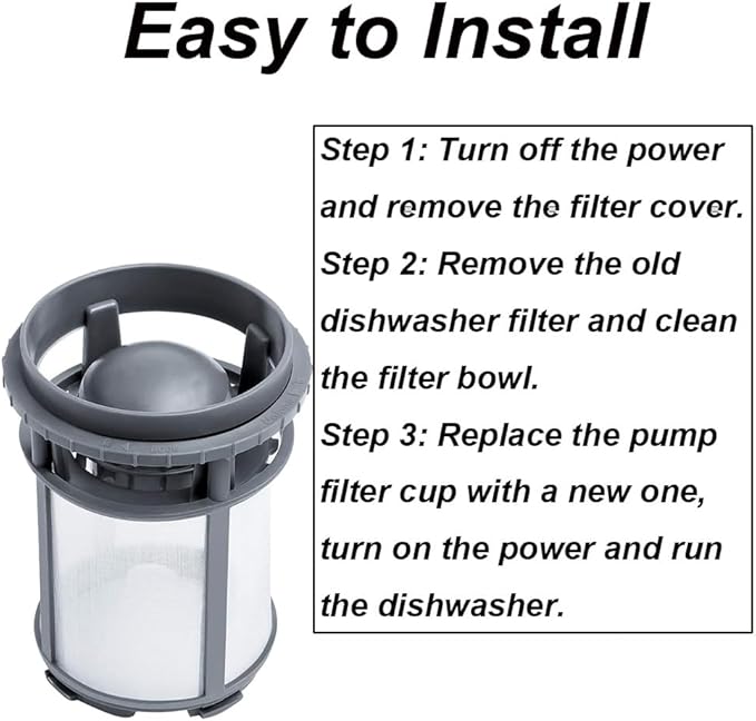 - 4. Featuring a user-friendly design, this dishwasher filter is easy to install and remove without the need for professional tools. Enjoy a convenient and time-saving replacement process that fits seamlessly into your routine