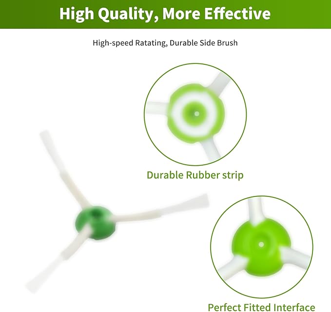 - Great value package:1 set multi-surface rubber brushes, 4 HEPA filters, 4 edge sweeping brushes, 4 dust bags,1 cleaning brush, 1 screwdriver, if the side brushes of i-robot replacement parts are bent due to shipping, just simply Soak in warm water for a while to recover.