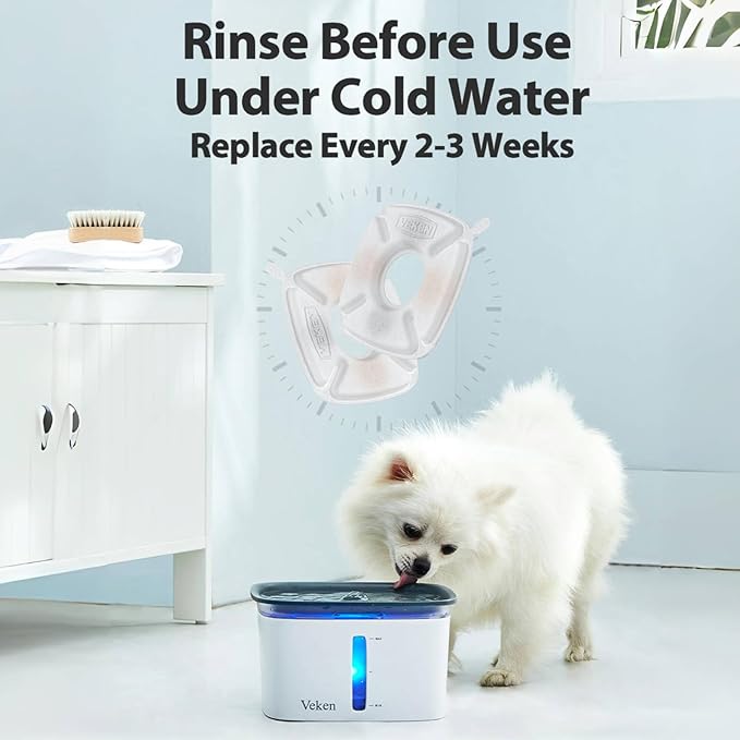 - 【Replace The Filter Regularly】 According to your pet's drinking frequency and the number of pets using the fountain, please replace the filter and the sponge every 2 to 3 weeks.